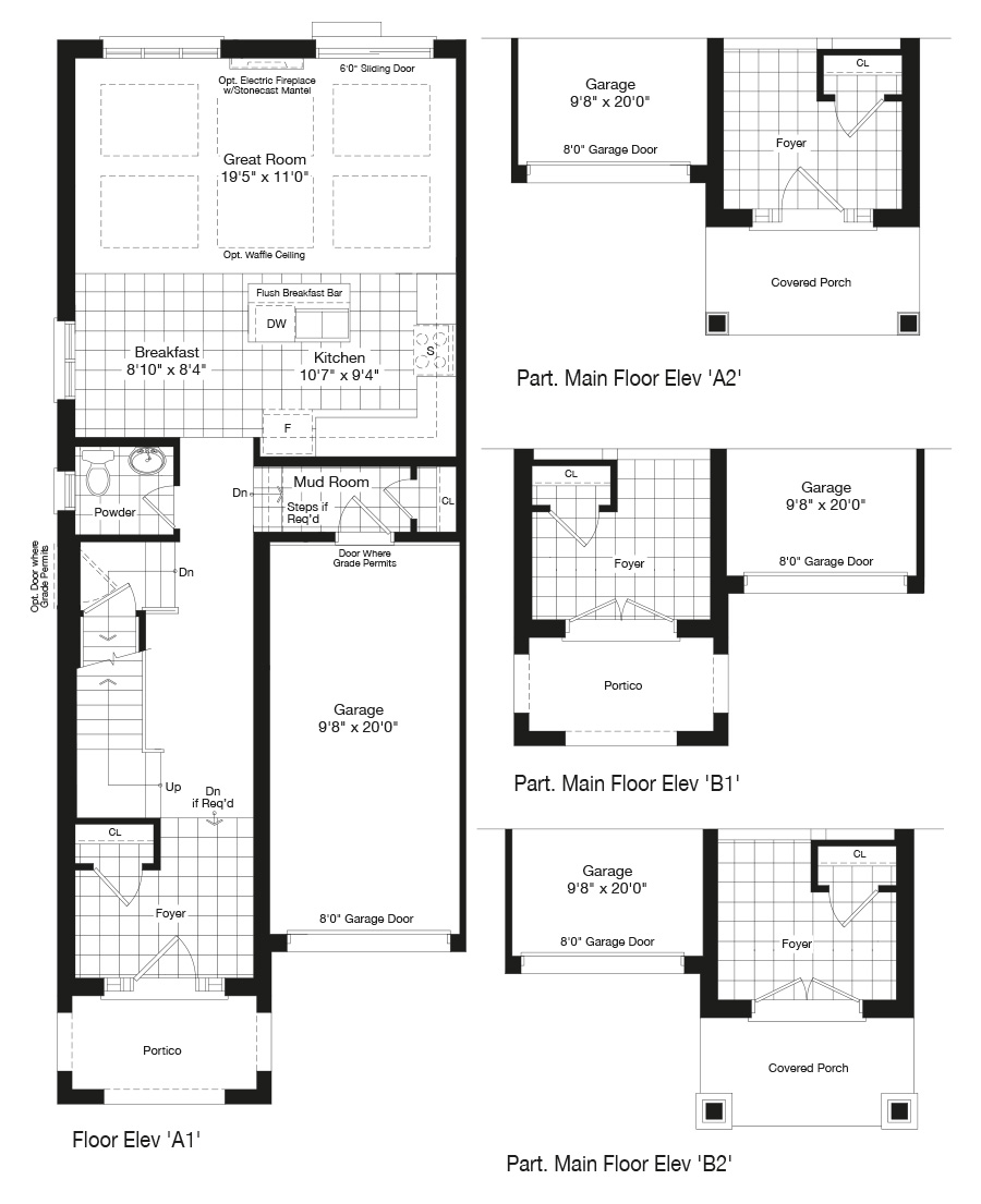 Elevation A1 | 1750 sq. ft. Bedrooms : 4 Bathrooms : 2.5 Garage : Single