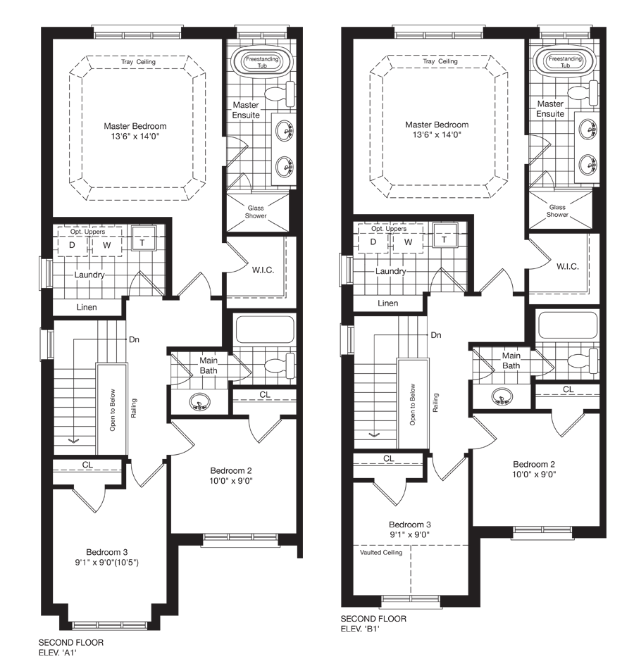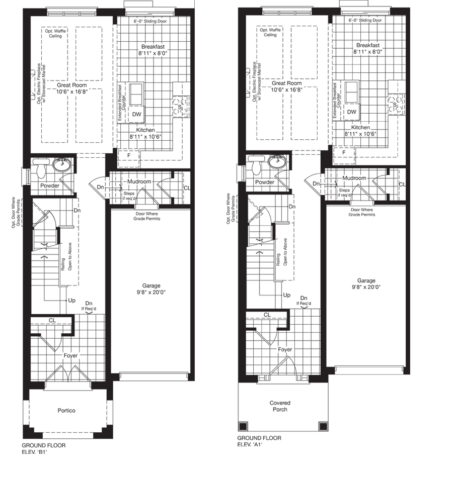 Elevation B1 | 1630/1640 sq. ft. Bedrooms : 3 Bathrooms : 2.5 Garage : Single