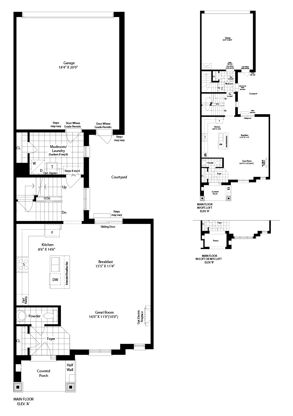 Elevation A | 1720 sq. ft. Bedrooms : 3 Bathrooms : 2.5 Garage : Double Option : Loft 2050 sq.ft.