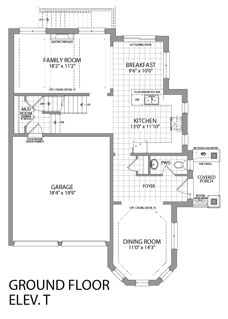 Elevation T | 2,390 sq. ft. Bedrooms : 4 Bathrooms : 2.5 Garage : Double