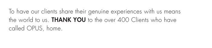 To have our clients share their genuine experiences with us means the world to us. THANK YOU to the over 400 Clients who have called OPUS, home.